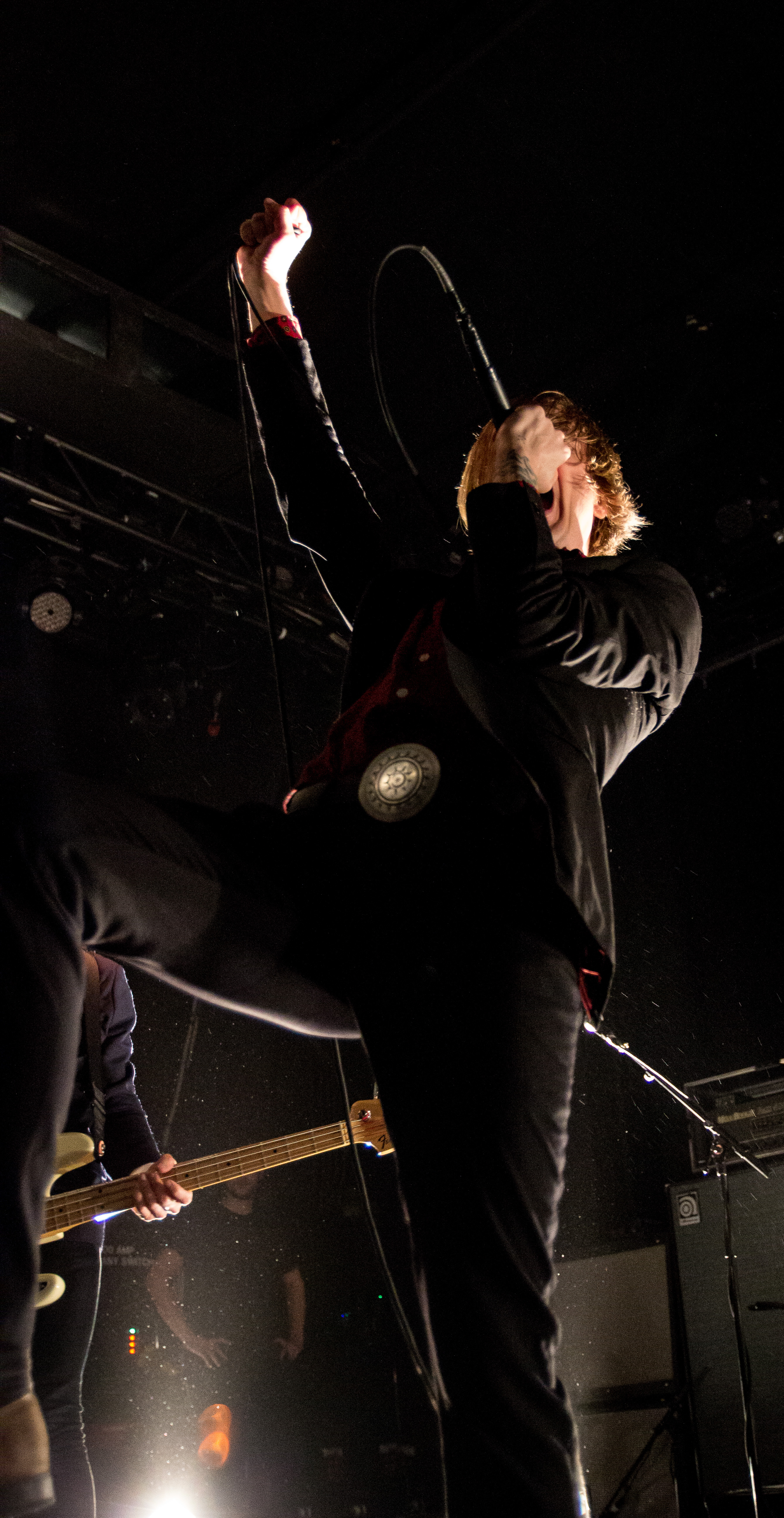 The night’s setlist focused on The Shape of Punk to Come. The first few notes of the dancey title track, reminiscent of Rage Against the Machine, ignited the audience and inspired a gigantic circle pit. Lyxzén hungrily fed off of the energy, wildly whipping the microphone through the air like a lasso, catching it perfectly just seconds before his vocals came back in. He danced and pranced with infectious charisma across the stage, not missing a beat the entire performance. David Sandström’s drum beats locked tightly into Magnus Flagge’s bass grooves, serving as an unbreakable rhythmic backbone. It was hard to believe Refused had taken any time off.