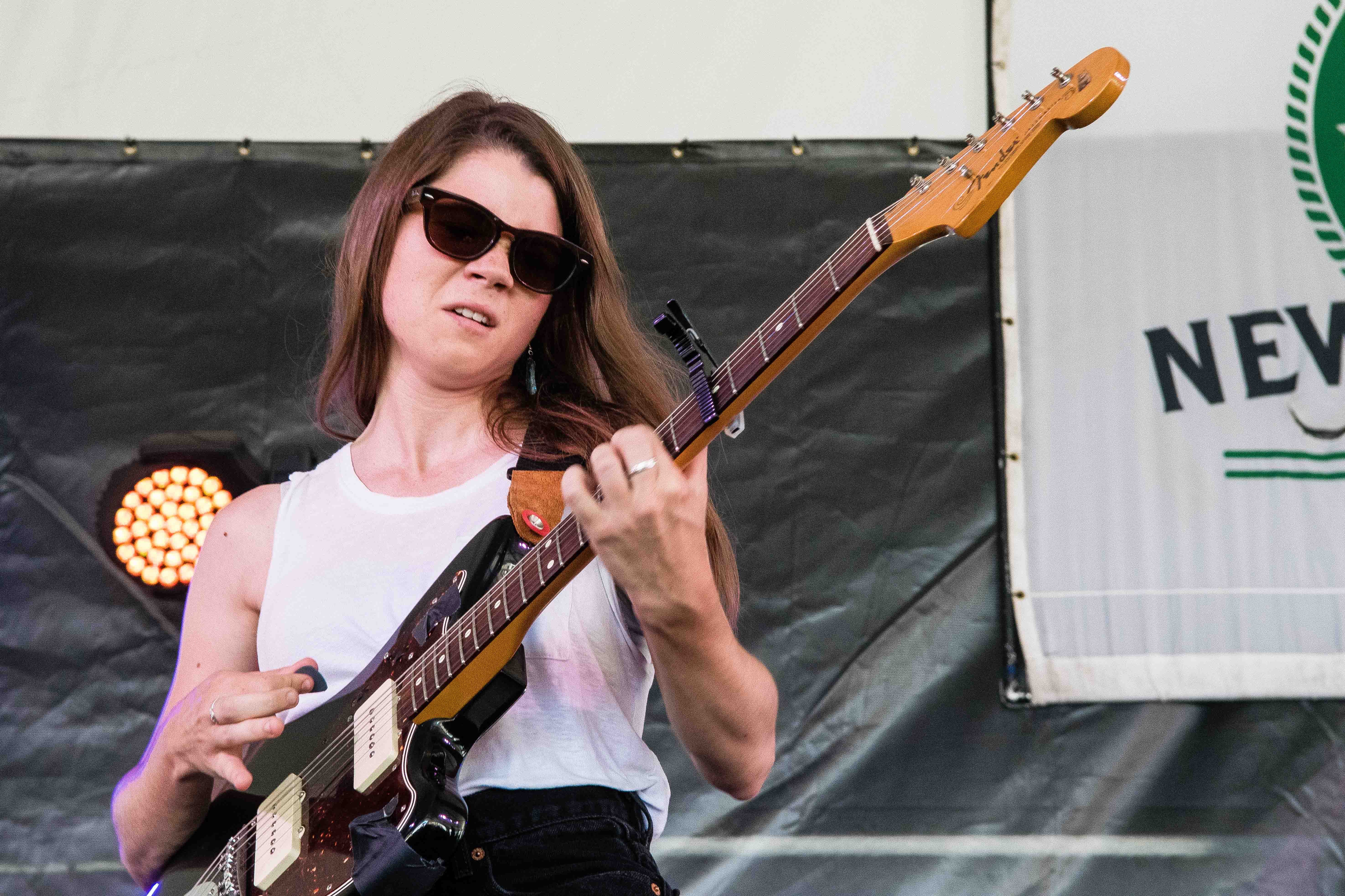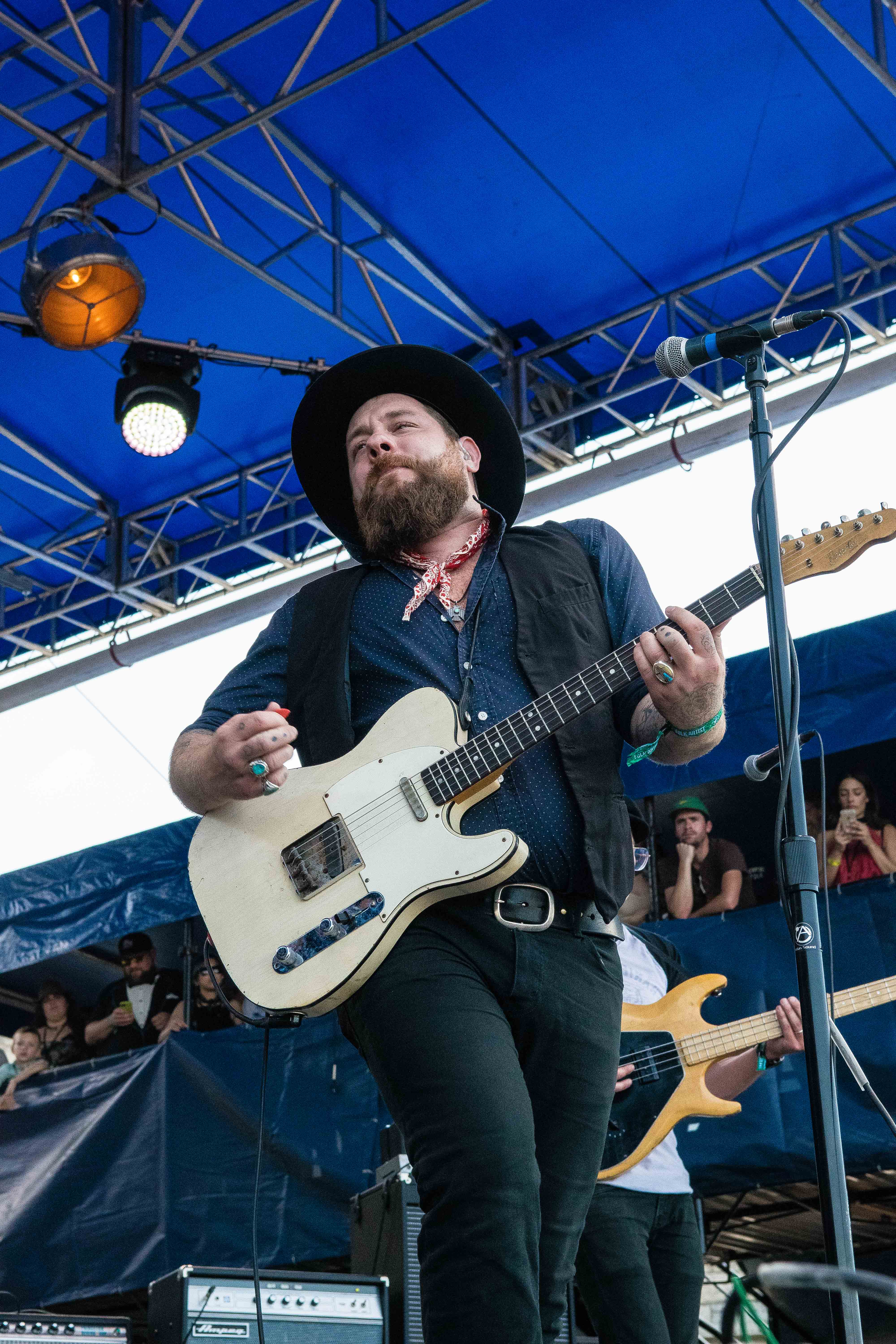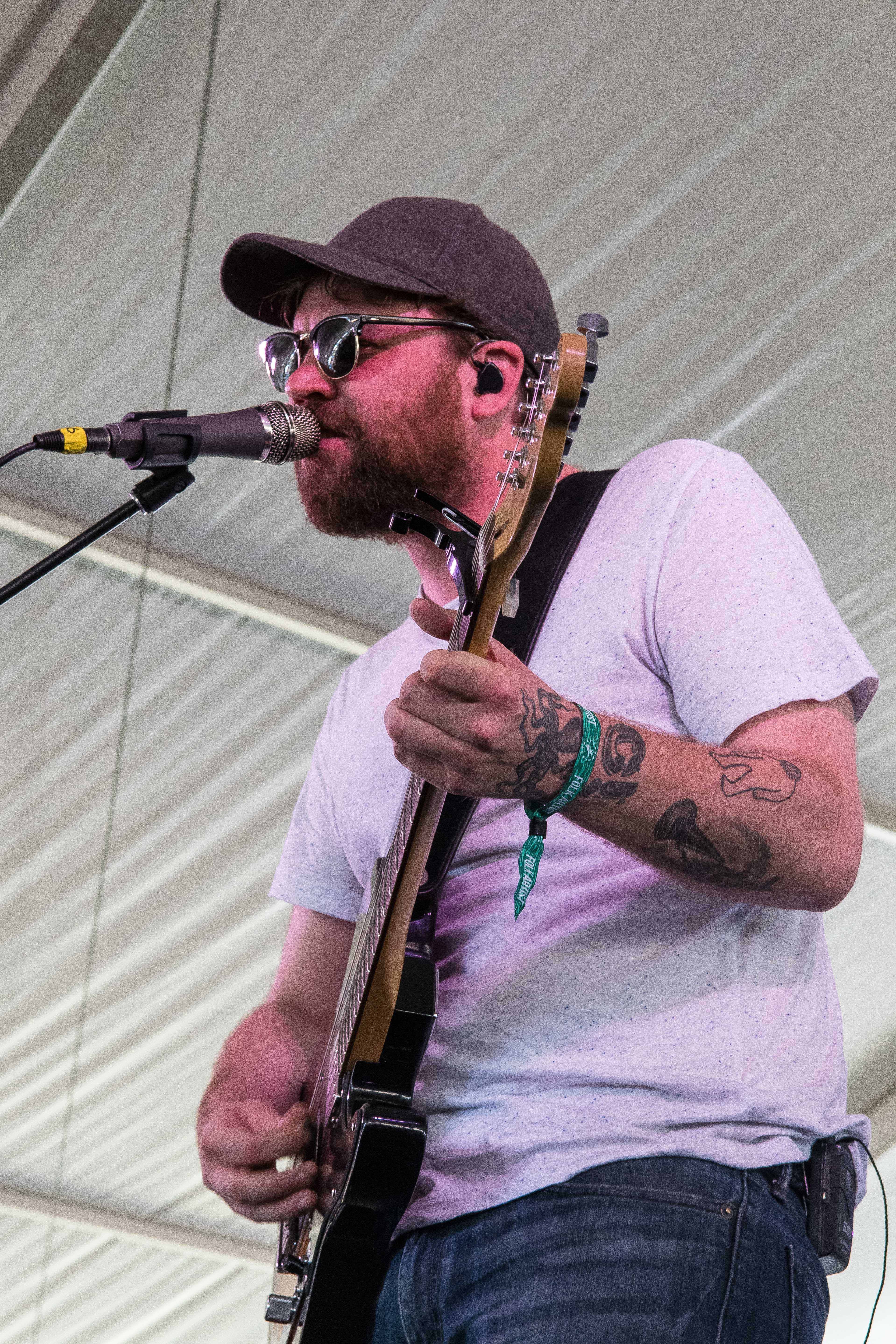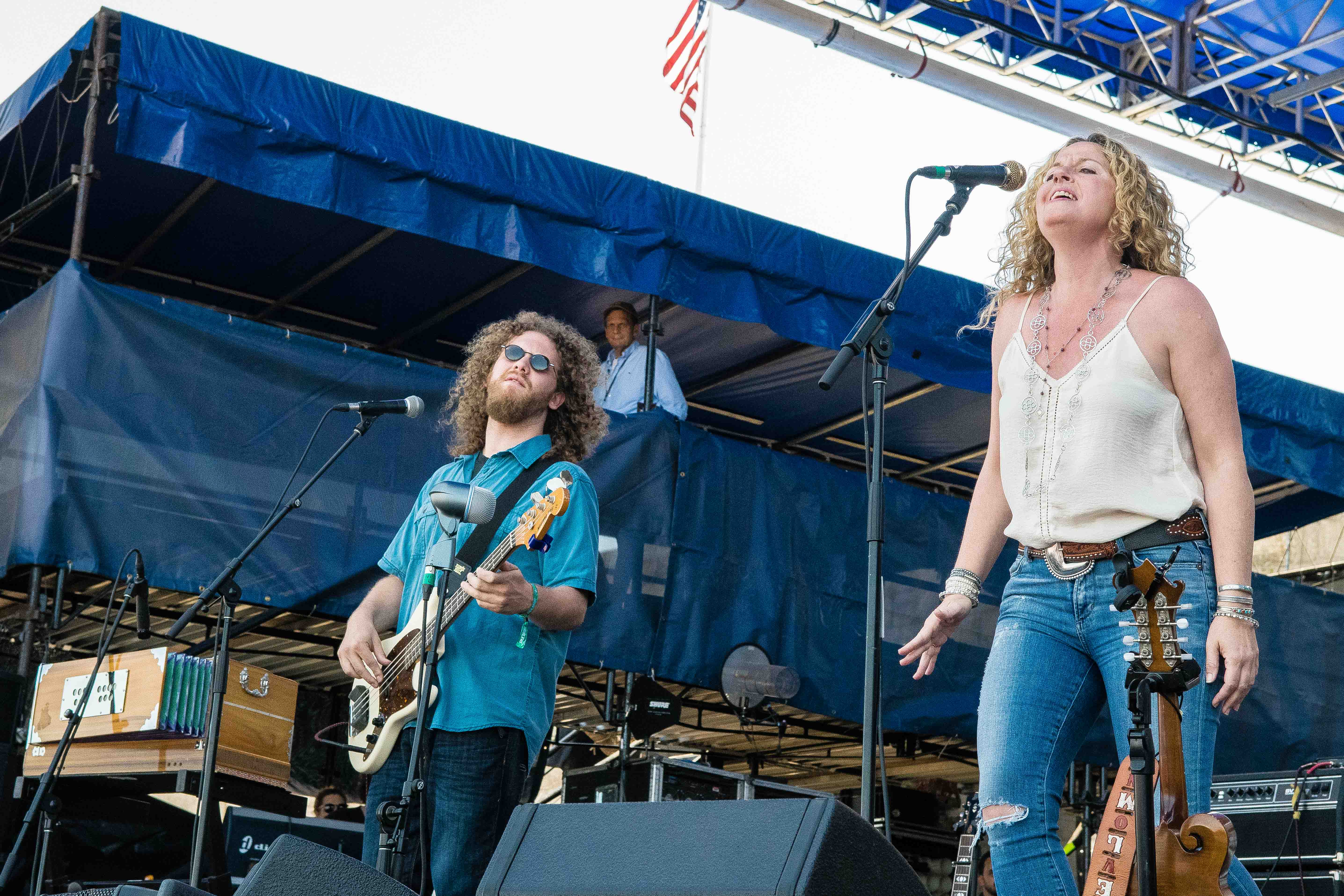 Spaltro’s set was accented with cymbal crashes that echoed throughout the tent. Her sound, a hybrid of folk and punk, relies on layers of light distortion, which Spaltro manipulates through her pedal board. Leaning back with her electric guitar in her arms, she stomped and strummed to the Harbor Stage crowd.