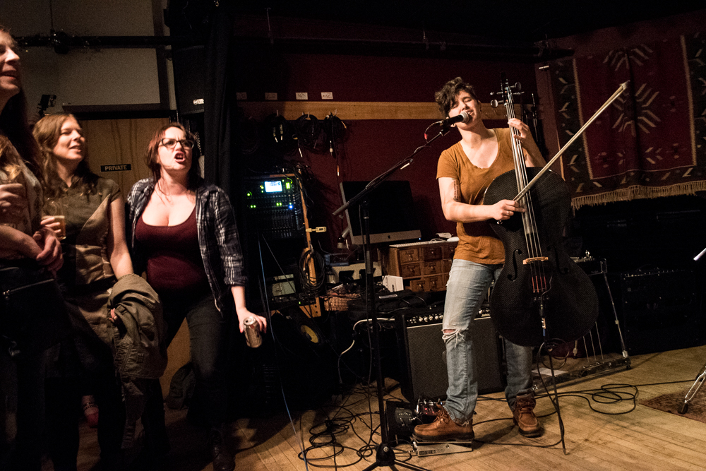 After Atkinson’s poem, the show transitioned into a makeshift intermission before two talented bands rounded out the night with some rock and folk. The somewhat thinned audience mingled to the low key angsty sounds of Hemway while recovering from Atkinson’s emotional ride. Rae, who also played bass for Hemway, encouraged the remainder of the audience to chat and prepare for the final act of the long night.