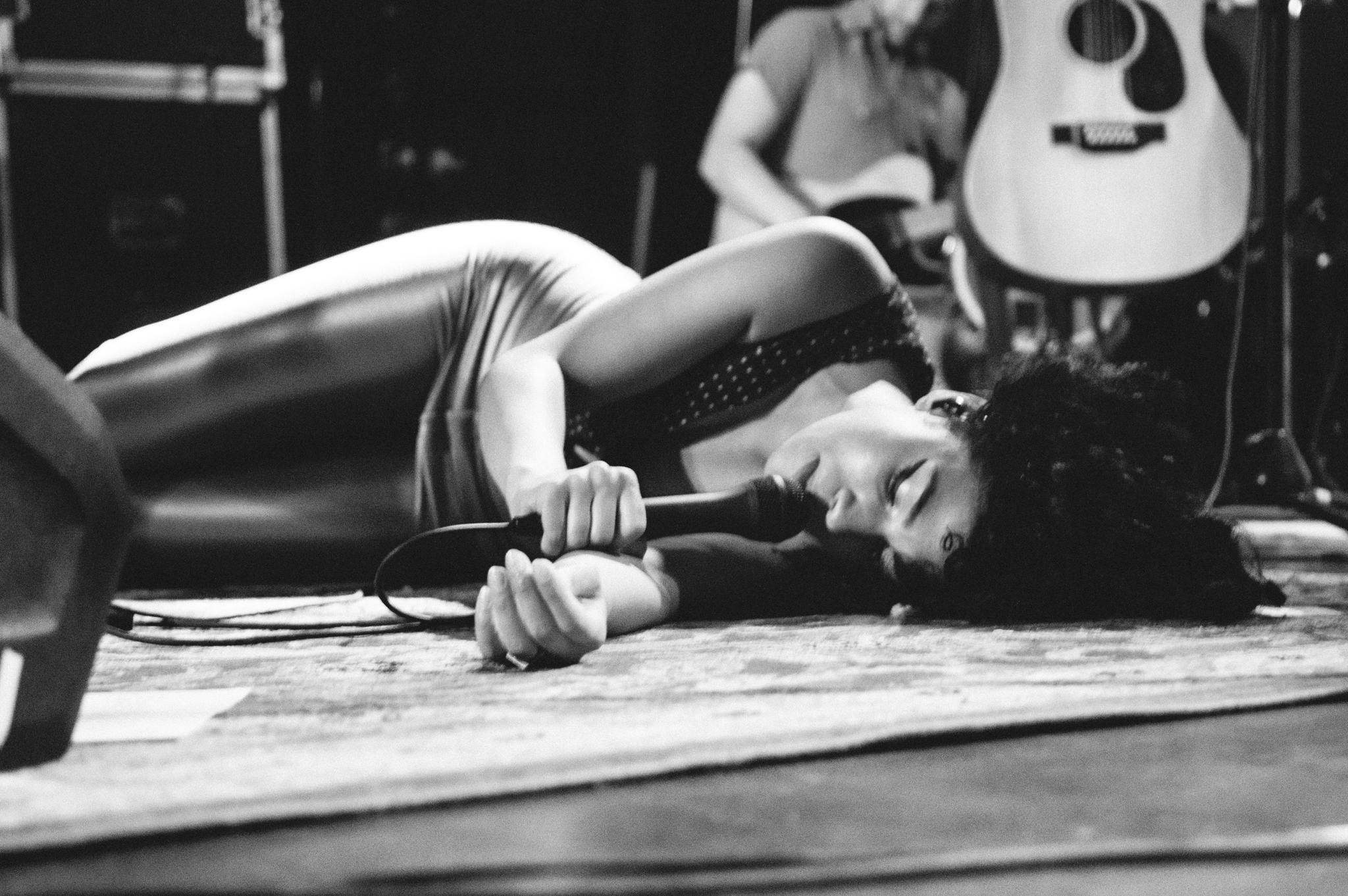 As the show neared an end, Martin, Krunnfusz and Roberts, moved to the edge of the stage, an arms-reach from the audience. The trio began an impressive a-capella cover of Boom Forest’s “No Lion” but more whining and pouting from (a fairly intoxicated) Martin left her bandmates looking like parents trying to calm a distressed child with a lullaby. On closer, “Espeon,” Martin’s frustrated shrieks startled the crowd, leaving us confused about what went wrong.