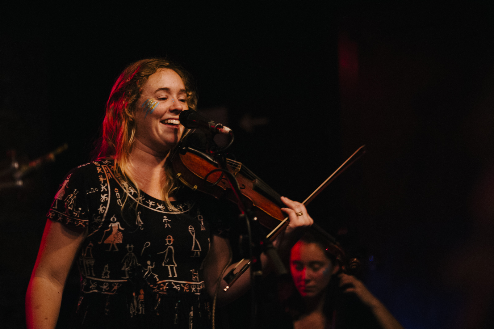 Wild Child took to the intimate stage to loud applause and much excitement as the loyal Boston fans had waited since 2011 to see Wild Child in person. Kelsey Wilson, one of the duo of lead singers and the magical voice behind Wild Child, welcomed the crowd and took us right into one of many mid-tempo folk songs from their recently released sophomore effort, The Runaround. Wild Child kept things fresh throughout the evening transitioning their story-telling ballads into raucous food-stomping jams.