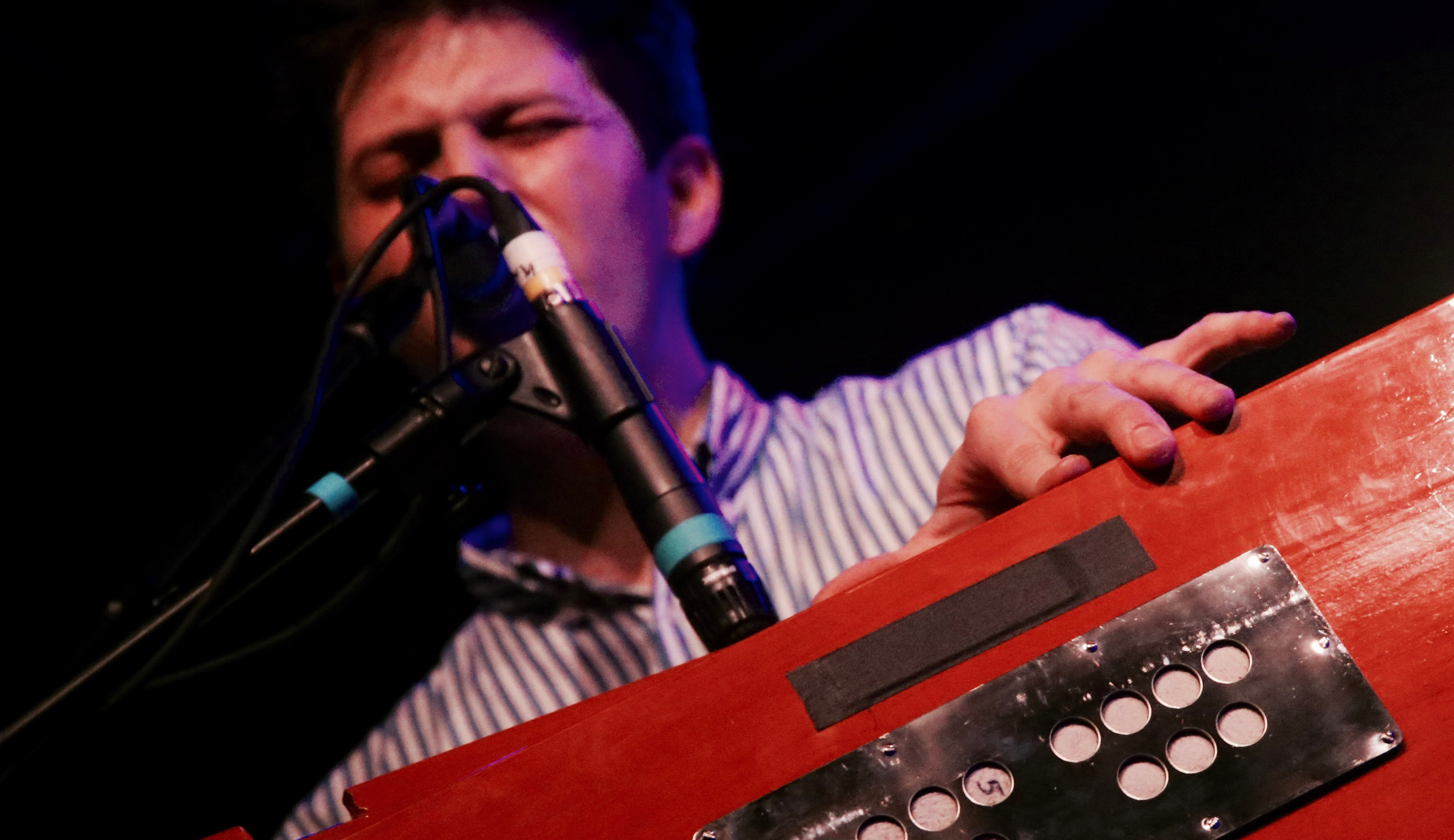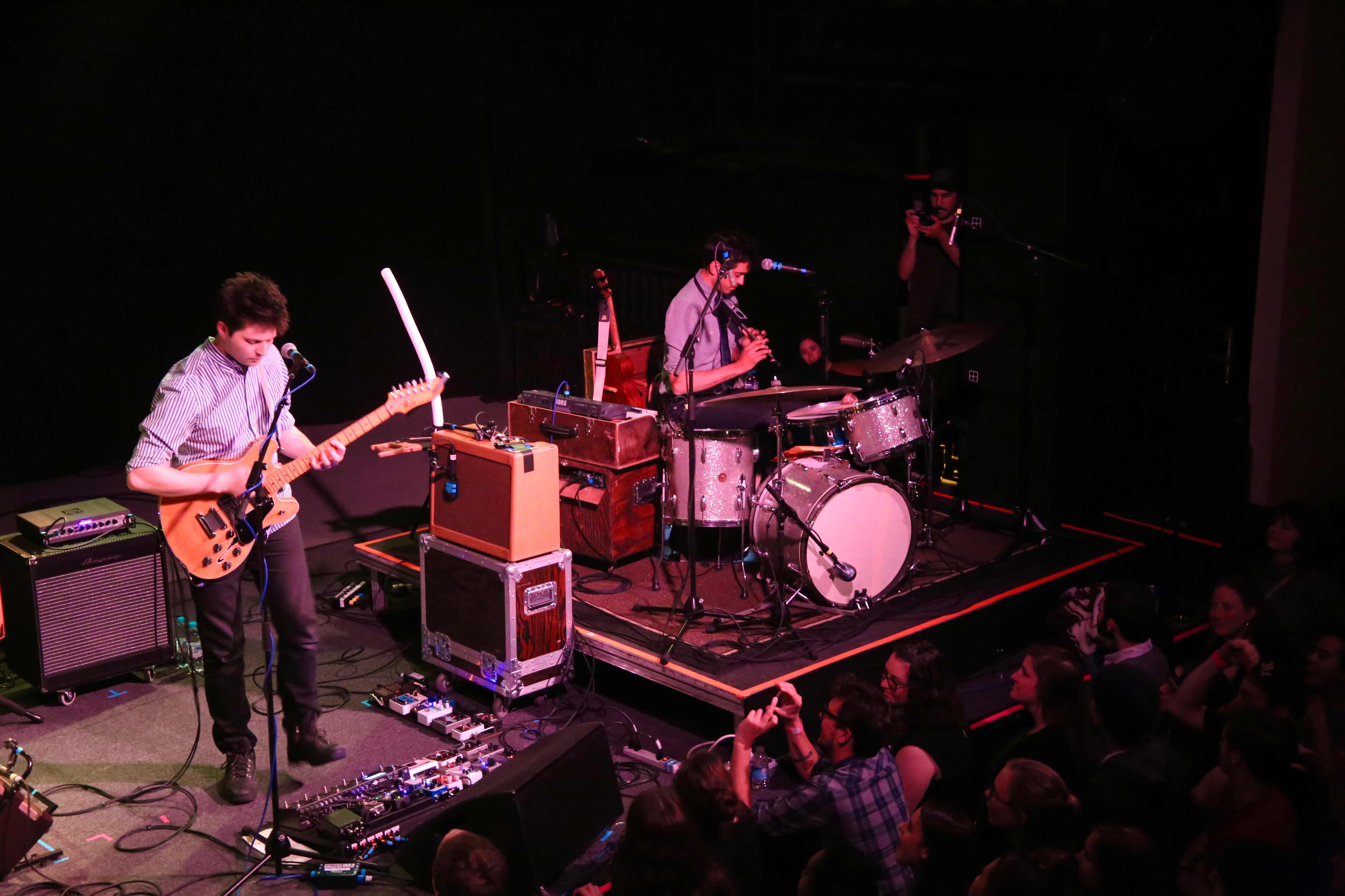 The stage still black, Josh Arnoudse, half of the quirky duo You Won’t, whipped what looked like a vacuum tube around his head like a lasso. It whirred and buzzed like a landing spaceship as artificial rain and thunder poured from the speakers. A litany of pedals were spread in an L at his feet. The only hint that we were at a music venue and not in a scene from E.T. were the photos of David Bowie and Prince taped behind the bar.